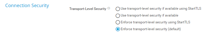 • Use transport-level security if available using StartTLS: Try to connect to the server via a Secure Sockets Layer (SSL)/Transport Layer Security (TLS) secured connection and StartTLS. If the server does not support this, the sensor tries to connect without connection security.